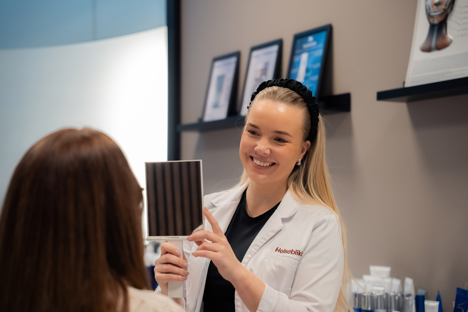 Våre kosmetiske sykepleiere hjelper deg med tilpassede produkter for din hudtilstand.